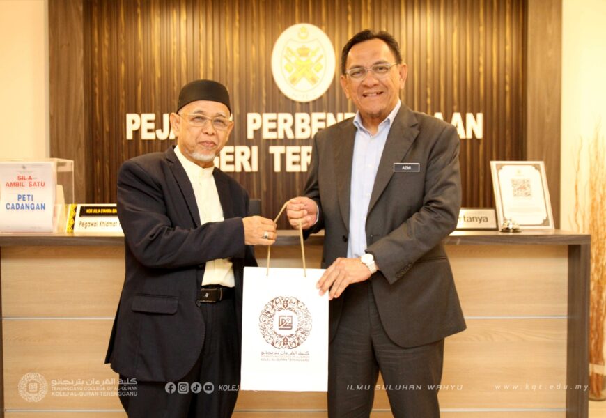 5 Ogos 2025 – Satu kunjungan hormat telah diadakan oleh pihak Kolej Al-Quran Terengganu (KQT) ke Pejabat Pegawai Kewangan Negeri Terengganu yang terletak di Tingkat 4, Wisma Darul Iman, di sini hari ini.