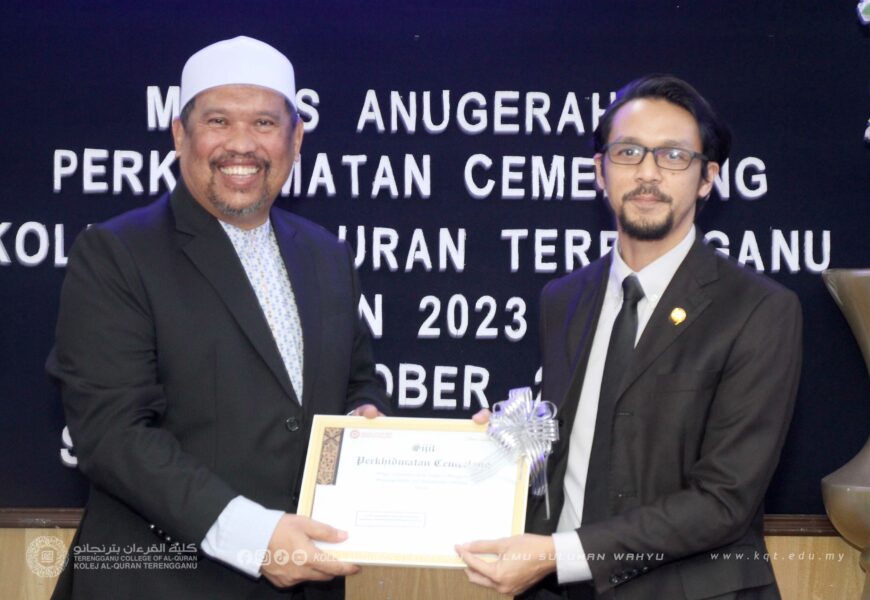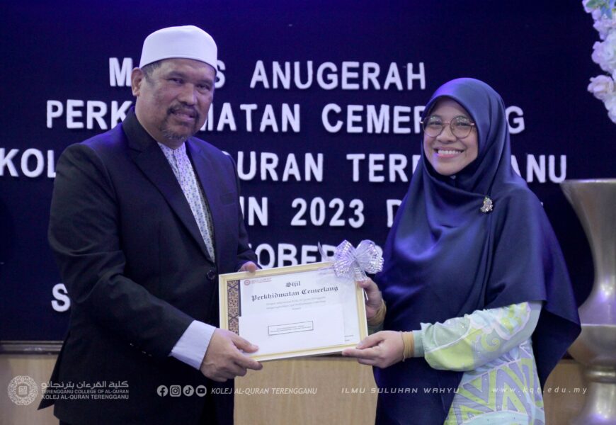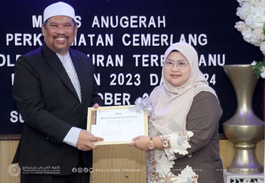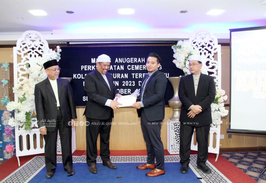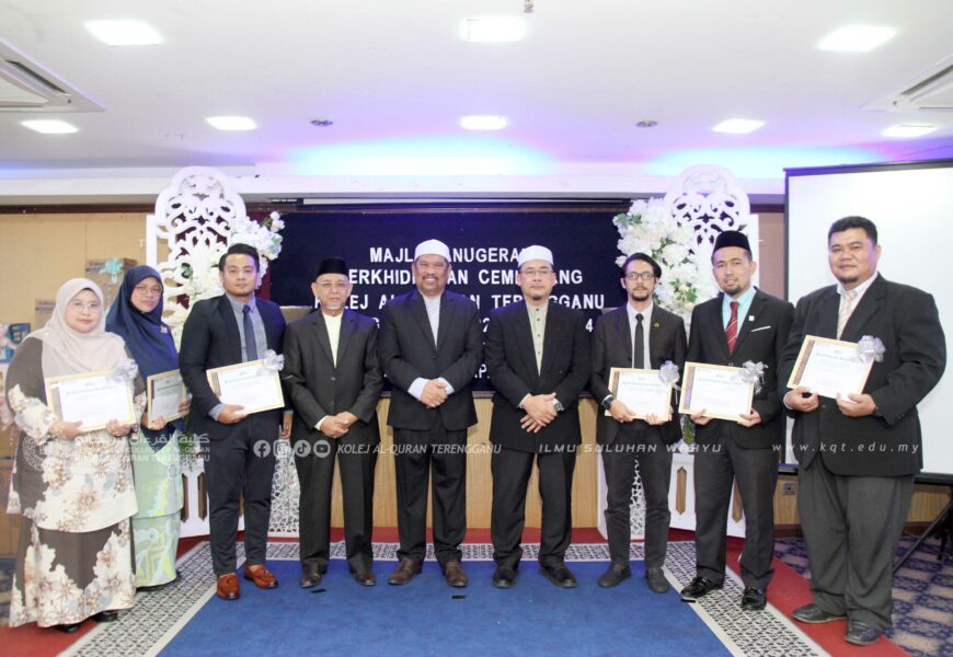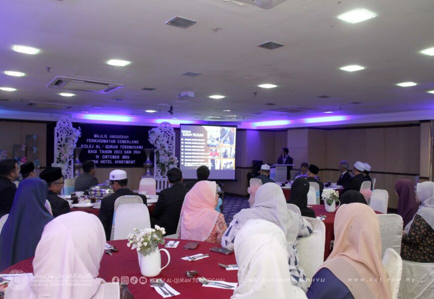 14 Oktober 2025 (Selasa) – Kolej Al-Quran Terengganu (KQT) telah menganjurkan Majlis Anugerah Perkhidmatan Cemerlang (APC) bagi tahun 2023 dan 2024 bertempat di Dewan Sumai Jasa, Sumai Hotel & Apartment, di sini hari ini.